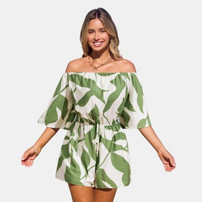 Women's Tropical Leaf Print Beach Romper - Cupshe