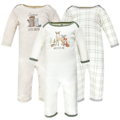 Little Treasure Baby Boy Cotton Coveralls 3pk, Moose Hug