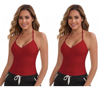 INSPIRE CHIC Women's Halter Neck Wireless Padded Tight Adjustable Spaghetti Straps Cropped Sport Tank Tops 2 Packs