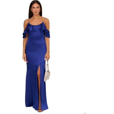 Adrianna Papell Womens Solid Slit Ruffled Gown Dress