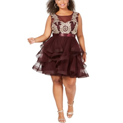 City Studio Womens Embellished Ruffled Fit & Flare Dress