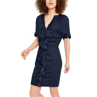 I.N.C International Concepts Womens Zip Front Mixed Media Ruffled Dress