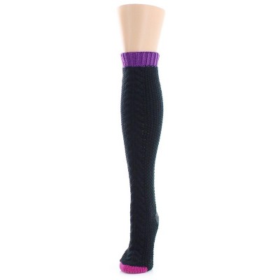 Memoi Women's Lace Trim Fleece Over The Knee Socks Black One Size