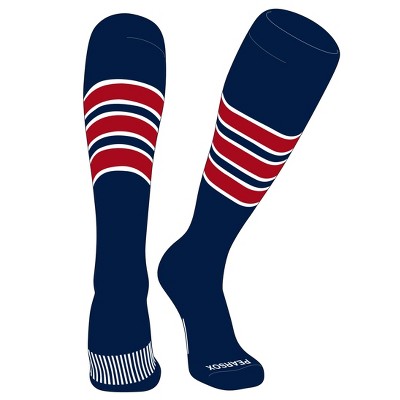 PEAR SOX Striped OTC Baseball, Softball, Football Socks (C) Navy, White, Red