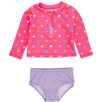 RuffleButts Baby/Toddler Girls UPF50+ Long Sleeve Zipper Rash Guard 2-Piece