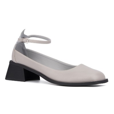 - light grey block heels