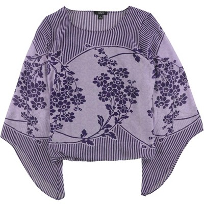 maison Jules Womens Sheer-Sleeve Floral Tunic Blouse