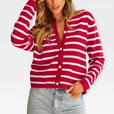 - blue striped cardigan