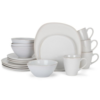 Elanze Designs Reactive Ceramic Dinnerware 16 Piece Set - Service for 4, White