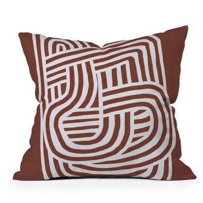 16"x16" Deny Designs Little Dean Line Art Sculpt in Umber Square Outdoor Throw Pillow Orange