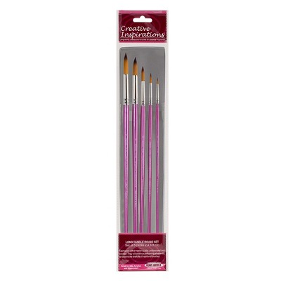Creative Inspirations Dura-Handle Round Assorted Size Long Handle Paint Brush Set of 5 - Solid Resin Handle, Synthetic Taklon Paint Brushes, round