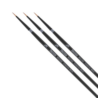 Creative Mark Beste Golden Taklon Round #3x0 Pack of 3 Artist Brushes, Professional Watercolor Brushes, For Acrylic Painting, Short Handle, Sharp