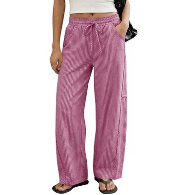 Anna-Kaci Women's Striped Drawstring Lounge Pants with Elastic Waistband and Relaxed Wide Leg Fit