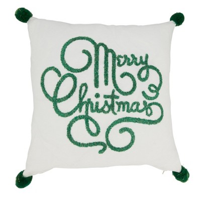 Saro Lifestyle Embroidered Merry Christmas Pillow - Down Filled, 14"x20" Oblong, Natural