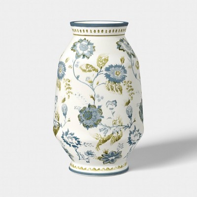 Short Floral Painted Ceramic Vase Green - Threshold™