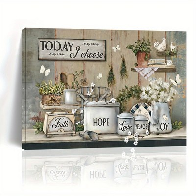 Paaaawaters 1pcs wood frame canvas painting rustic kitchen wall art farmhouse kitchen wall decor wall art print with frame