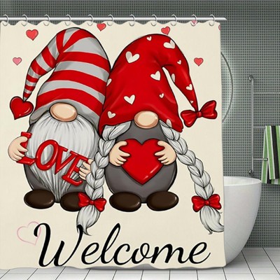 Valentine's Day Gnome Couple Shower Curtain, Waterproof & Stain-Resistant, Privacy Shield, Perfect for Bathroom & Gifting 70.8x70.8Inch
