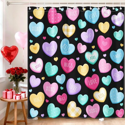 Cute Love Hearts Valentine's Day Shower Curtains for Bathroom Waterproof Bath Curtain Durable Soft Stylish Bathroom Decor 72x72 Inch
