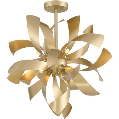 Possini Euro Design Verity 22" Modern Semi Flush-Mount Ceiling Light Fixture Kitchen Foyer Hallway Twisted Unique 6-Light LED Gold Finish Metal
