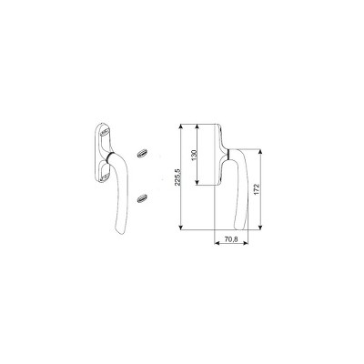 Brixwell 856-10035W Unica Cremone OS Oper Handle White 225.5 Height 172 Handle 130 Inner 70.8 Base Curved Lever Mount Plate