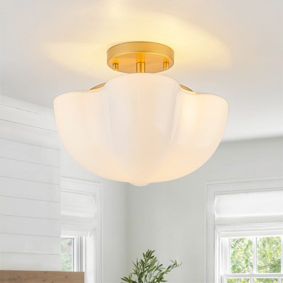 LLHZSY 12 1/5" Modern White Petal Glass Ceiling Light, 3-Light Semi-Flush Mount Fixture for Indoor Spaces