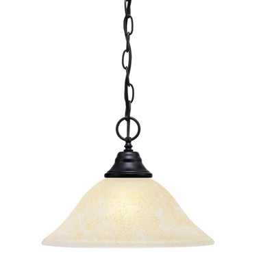 Toltec Lighting Any 1 - Light Pendant in Matte Black with 12" Amber Marble Shade