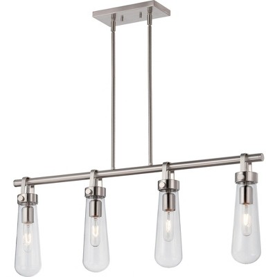 Dewdrop Scandinavian Kitchen Island Light 4 Light Linear Bar White Cone Shades Central Downrod Triangular Frame ETL for Kitchen Island, Bar