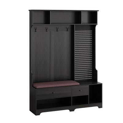 77.17"H 4-in-1 Design Hall Tree with 4 Hooks, Coat Rack, DIY Pegboard and Entryway Removable Linen Cushioned Storage Bench - ModernLuxe