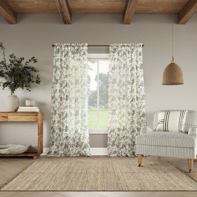 No. 918 1pc 51"x84" Alethea Floral Print Crushed Sheer Voile Rod Pocket Curtain Panel Antique