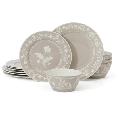 Martha Stewart Maiden Crown 12-Piece Dinnerware Set – Vegan Bone China Ceramic with Floral Design – Service for 4