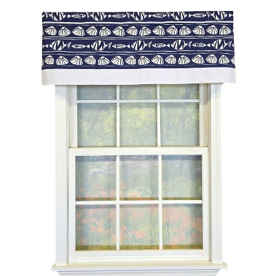 RLF Home She Shells Banded Valance Collection - 100% Cotton with Ivory Lining 50" x 16" Navy