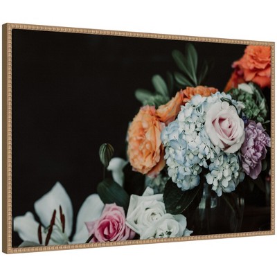 Kate and Laurel Sylvie Beaded Floral Emergence Framed Canvas by Mackenzie Nelson, 23x33 Sylvie Beaded Rustic Natural