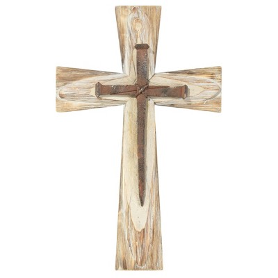 Dicksons Rustic Nails Decorative Natural Woodgrain 19.5 x 12.75 Wood And Resin Wall Cross