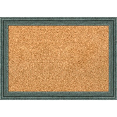 31"x23" Upcycled Wood Frame Black Cork Board Teal/Gray - Amanti Art: Eco-Friendly Wall Mount Bulletin Board