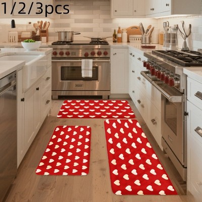 Lomsoe 2/3pcs Simple Kitchen Decor Carpet, Heart Kitchen Mat, European Minimalist Style, Valentine's Day Gift.