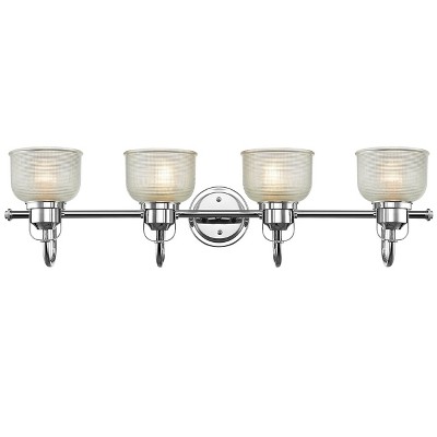 Chloe Lighting Lucie Industrial-Style 4 Light Chrome Finish Bath Vanity Wall Fixture Clear Prismatic Glass 34" Wide