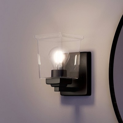 Progress Lighting Bonita 1-Light Wall Sconce, Steel, Matte Black, Summer Linen Shade