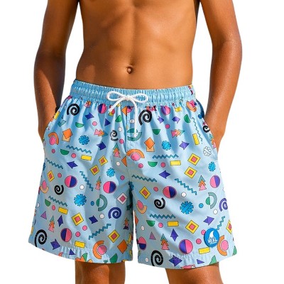 Heat Swimwear Boys Printed Tie Front Swim Trunk Board Shorts, Geometric Forms