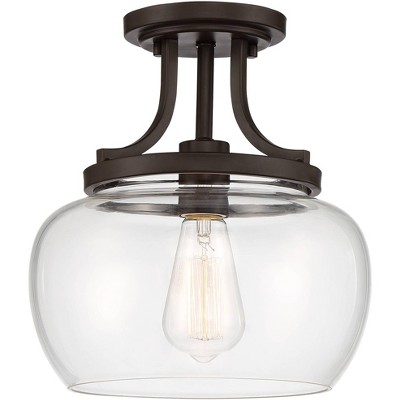 Regency Hill Rustic Farmhouse Industrial Ceiling Light Semi Flush Mount Fixture 10 1/4" Wide Black Curved Clear Glass Shade for Bedroom Kitchen House