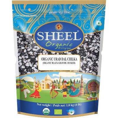 Organic Urad Dal Chilka / Split Black Gram with Husk - 64 oz (4Lb) 1.8 kg - Sheel Brand - USDA Certified Organic Product