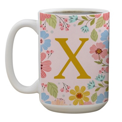 Personalization Mall Flowery Initial Coffee Mug, 15 Oz., Blue Aqua