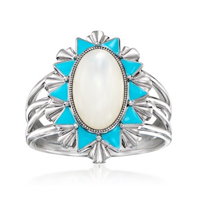 Ross-Simons Mother-Of-Pearl Ring With Blue Enamel in Sterling Silver