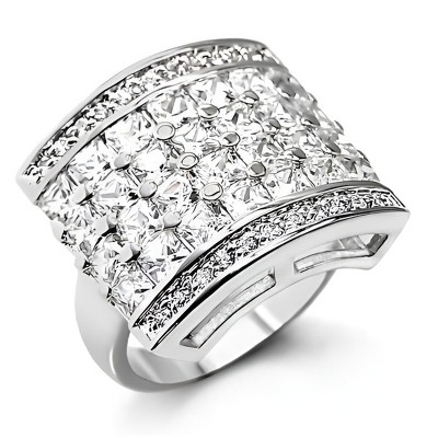 Slickblue Rhodium Brass Cocktail Ring with Clear CZ - Pave Set, Square Design, Women's Statement Jewelry, Size 5-8