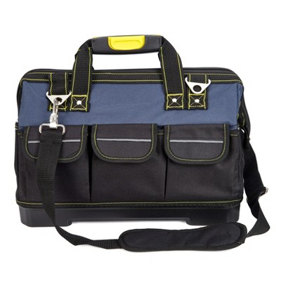 16-Inch Tool Bag with Reflective Safety Strip, Large Capacity Work Storage, Waterproof Plastic Base, Shoulder Strap