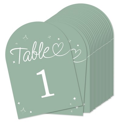Big Dot of Happiness Wedding Hearts Sage Green Table Numbers Centerpieces, Double-Sided 5 x 7 inches Cards, Table Numbers - 1-20