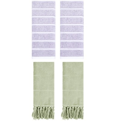 SEVOBAL Bath Towel and Washcloth Sets 2 Piece Ultra Soft Absorbent Cotton for Softness and Durability, Green, 18"*12.01"*6.25"