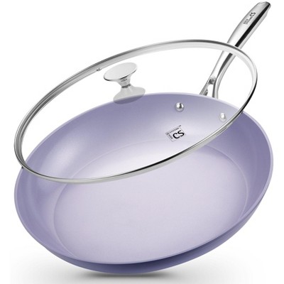 Bloomhouse 10 Inch Triply Stainless Steel Fry Pan W/ Lid W/ Non-Stick Non-Toxic Pro Ceramic Interior Frying Pan