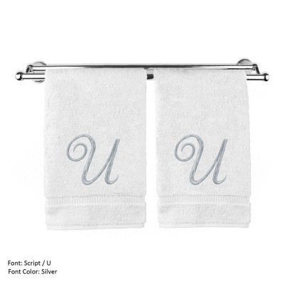 BC BARE COTTON Monogrammed Washcloth Towel, 13x13 Inches - Set of 2 - Embroidered Towel - Gray - Gold Script
