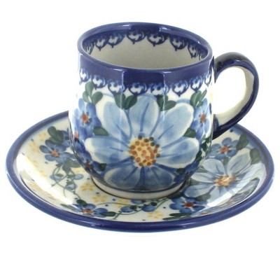 Blue Rose Polish Pottery 222 Vena Espresso Cup & Saucer