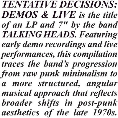 The Talking Heads - Tentative Decisions: Demos & Live (Vinyl)